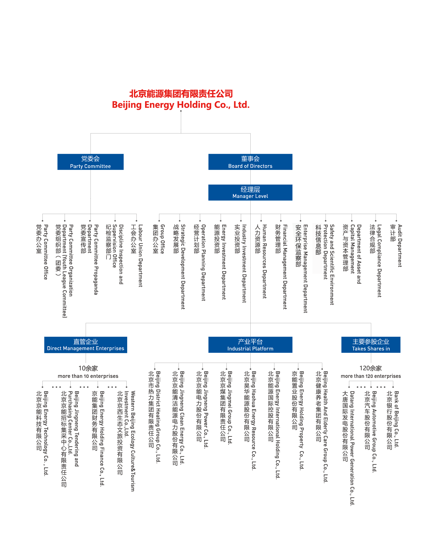北京能源集團有限責任公司(以下簡稱“京能集團”或“集團”)是北京市人民政府出資設立的國有獨資公司,肩負著保障首都北京能源安全可靠供應的重任。集團成立于2004年,由原北京國際電力開發(fā)投資公司和原北京市綜合投資公司合并而成,2011年、2014年先后又與北京市熱力集團有限責任公司、北京京煤集團有限責任公司實施合并重組,實現(xiàn)了產業(yè)鏈條融合互補。經過多年的資源整合,集團由單一能源產業(yè)發(fā)展為熱力、電力、煤炭、健康文旅等多業(yè)態(tài)產業(yè)格局。2024年底,集團資產規(guī)模達4934億元,年營業(yè)收入975億元,全資及控股企業(yè)860余家,參股企業(yè)120余家,擁有員工3.4萬余人,投資區(qū)域遍布全國33個省市區(qū)以及海外,控股京能清潔能源、京能電力、昊華能源、京能置業(yè)、北京能源國際、京能熱力六家上市公司,盈利水平長期穩(wěn)居北京市屬企業(yè)前列。2024年在中國企業(yè)500強排名第247位,中國服務企業(yè)500強排名第87位。